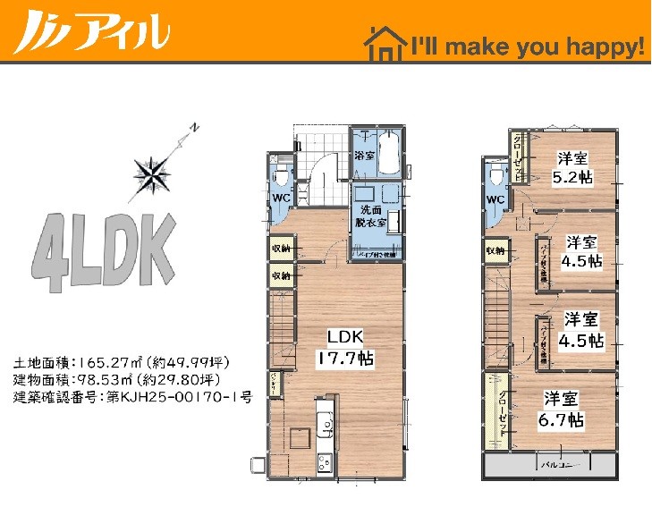 | 建物面積 | 98.53m2 | 土地面積 | 165.27m2 |