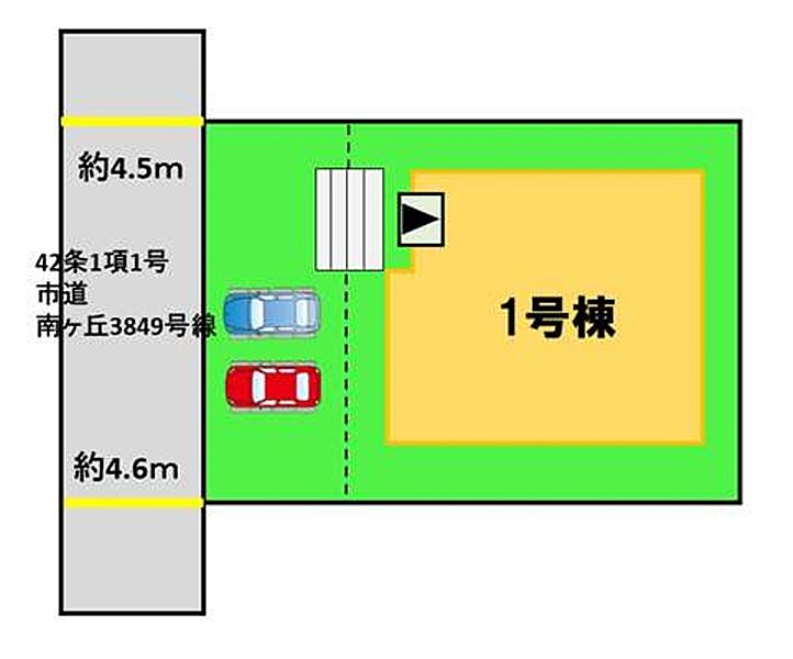 | 駐車場 | 2台 | 道路の幅員 | 1号棟:北西4.5m |