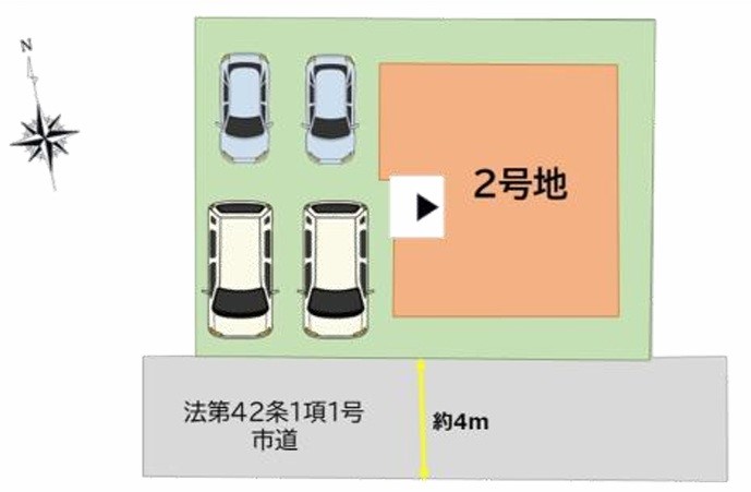 | 駐車場 | 4台 | 道路の幅員 | 2号棟:南4m |