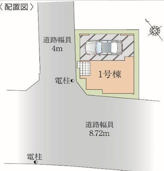 | 駐車場 | 1台 | 道路の幅員 | 1号棟:北西4m 南西8.7m |
