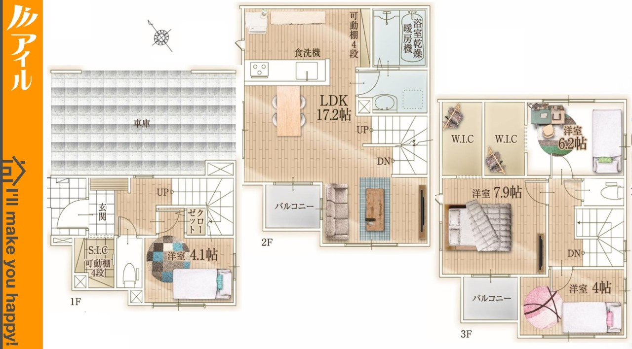 ■アイルは安心の創業39年! 定休日なし 毎日現地見学可能 店舗はリクルート天神ビル4Fです ■現地案内随時受付中 当日のご内覧も可能です!お仕事帰りのお時間でも事前にご相談頂ければ調整いたします。 ・さくっとコース・・・忙しいお客さまでもさくっとご見学可能です。 ・ゆっくりコース・・・細かい設備等もゆっくりとご説明させていただきます。 ・じっくりコース・・・分譲地+周辺環境なども一緒にご紹介可能です。 その他お客さまのご予定に合わせてご内覧いただけます。 ■お子様連れでのご内覧・ご来店も大歓迎! お子様向けのお菓子等ご用意しております。お気軽にお申し付けくださいませ。 ■ご案内方法 ◎お客さまのご指定時間帯に、現地物件でのお待ち合わせ ◎担当スタッフによる送迎 ・ご自宅 ・最寄駅 ・物件近くの目印施設 etc… その他ご希望のお迎え場所等ございましたらお気軽にご相談下さい。 ◎弊社にご来店される場合 福岡市中央区舞鶴1-1-3 リクルート天神ビル4F ※お車でお越しの場合、駐車場料金は弊社が負担いたしますのでご安心ください 『接道』角地 北西4m公道 南西8.7m公道 設備:都市ガス 公営水道 下水 防犯シャッター BELS/省エネ基準適合認定書あり 駐車場1台 閑静な住宅地 平坦地 角地 地盤調査済 前道6m以上 周辺交通量少なめ 保育施設・幼稚園5分以内 公園5分以内 コンビニ5分以内 ガス3口 カウンタキッチン 対面キッチン 食器洗い機付き 浄水器 追い焚き 浴室乾燥機 ウォシュレット オートバス付き 脱衣所 トイレ2ヶ所 浴室1坪以上 節水型トイレ 浴室暖房 バルコニー 3階建以上 LDK15畳以上 採光2面 全室2面採光 南西向き フローリング 全室フローリング リビング階段 スマートキー クローゼット ウォークインクローゼット 収納 下駄箱 シューズインクローク シャンプドレッサー付き フラット35Sに対応 年度内入居可 モニタ付きインターフォン 複層ガラス 火災警報器(報知機) 24時間換気システム |
