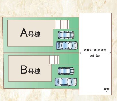 | 駐車場 | 2台 | 道路の幅員 | B号棟:北東6.8m |