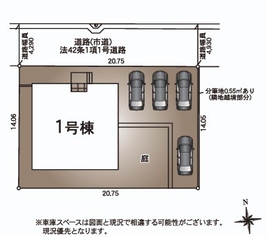 | 駐車場 | 4台 | 道路の幅員 | 1号棟:北4.9m |