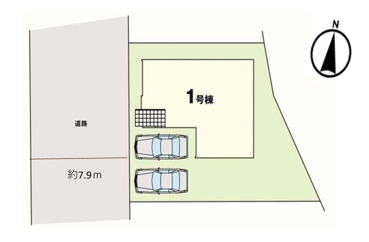 | 駐車場 | 2台 | 道路の幅員 | 1号棟:西7.9m |