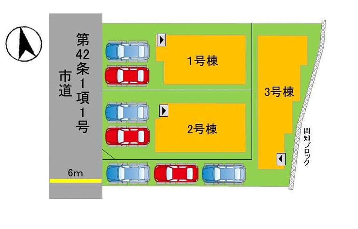 | 駐車場 | 3台 | 道路の幅員 | 3号棟:西6m |