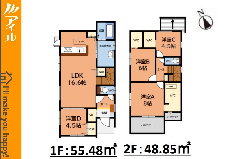 | 建物面積 | 104.33m2~108.91m2 | 土地面積 | 124.20m2~143.57m2 |