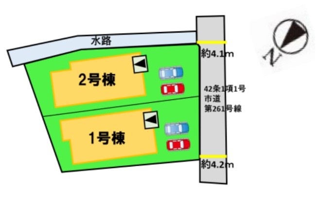 | 駐車場 | 2台 | 道路の幅員 | 2号棟:南4.2m /1号棟:南4.2m |