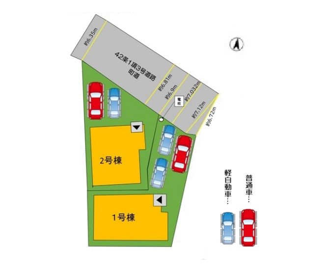 | 駐車場 | 2台 | 道路の幅員 | 2号棟:北6.8m |