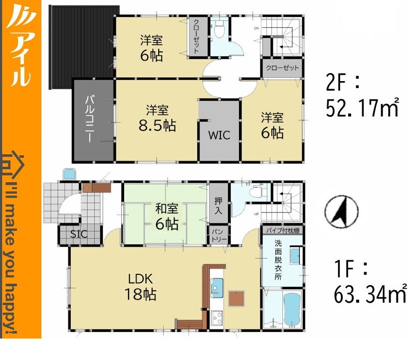 2号棟 間取り 4LDK 価格 3498万円 建物面積 115.51m2 土地面積 160.99m2 -