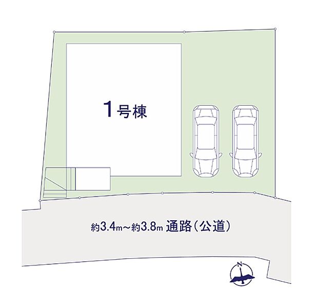| 駐車場 | 2台 | 道路の幅員 | 1号棟:南3.4m |