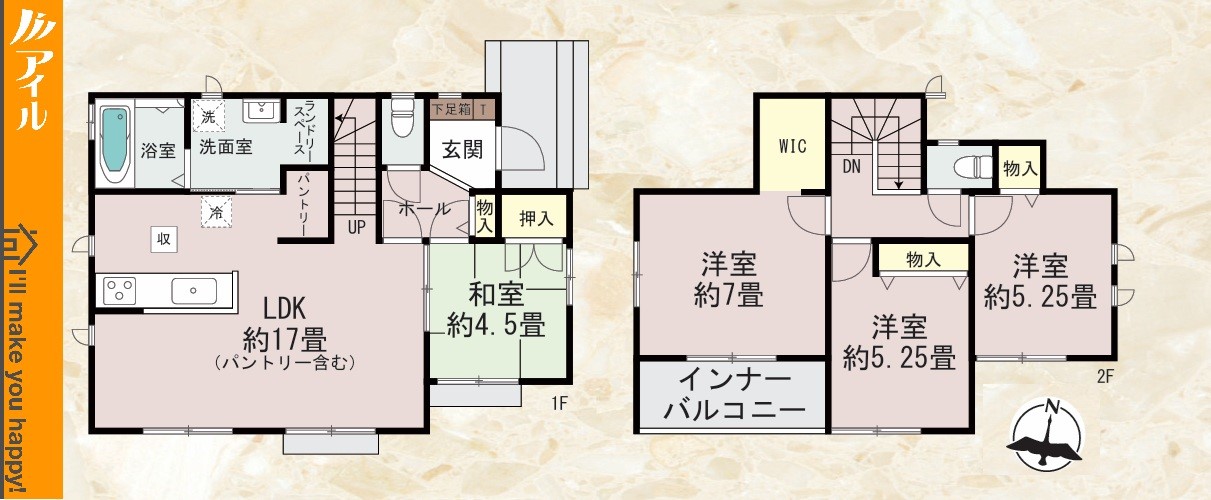 ■アイルは安心の創業39年! 定休日なし 毎日現地見学可能 店舗はリクルート天神ビル4Fです ■現地案内随時受付中 当日のご内覧も可能です!お仕事帰りのお時間でも事前にご相談頂ければ調整いたします。 ・さくっとコース・・・忙しいお客さまでもさくっとご見学可能です。 ・ゆっくりコース・・・細かい設備等もゆっくりとご説明させていただきます。 ・じっくりコース・・・分譲地+周辺環境なども一緒にご紹介可能です。 その他お客さまのご予定に合わせてご内覧いただけます。 ■お子様連れでのご内覧・ご来店も大歓迎! お子様向けのお菓子等ご用意しております。お気軽にお申し付けくださいませ。 ■ご案内方法 ◎お客さまのご指定時間帯に、現地物件でのお待ち合わせ ◎担当スタッフによる送迎 ・ご自宅 ・最寄駅 ・物件近くの目印施設 etc… その他ご希望のお迎え場所等ございましたらお気軽にご相談下さい。 ◎弊社にご来店される場合 福岡市中央区舞鶴1-1-3 リクルート天神ビル4F ※お車でお越しの場合、駐車場料金は弊社が負担いたしますのでご安心ください 『接道』角地 北東3.9m公道 北西3.6m公道 『法令上の制限』その他制限事項:法第22条区域 設備:公営水道 下水 防犯シャッター 設計住宅性能評価付 建設住宅性能評価書(新築時) 駐車場2台以上 緑豊かな住宅地 閑静な住宅地 平坦地 地盤調査済 山が見える 周辺交通量少なめ スーパーが近い(10分以内) システムキッチン カウンタキッチン 対面キッチン 浄水器 IHクッキングヒーター コンロ口数三口 追い焚き 浴室乾燥機 ウォシュレット オートバス付き 脱衣所 トイレ2ヶ所 浴室1坪以上 浴室に窓 節水型トイレ バルコニー 2階建 LDK15畳以上 和室 採光2面 全室2面採光 東南向き フローリング オール電化 リビング階段 クローゼット ウォークインクローゼット 押し入れ 収納 床下収納 下駄箱 シャンプドレッサー付き 年度内入居可 モニタ付きインターフォン 複層ガラス 火災警報器(報知機) 陽当り良好 24時間換気システム |