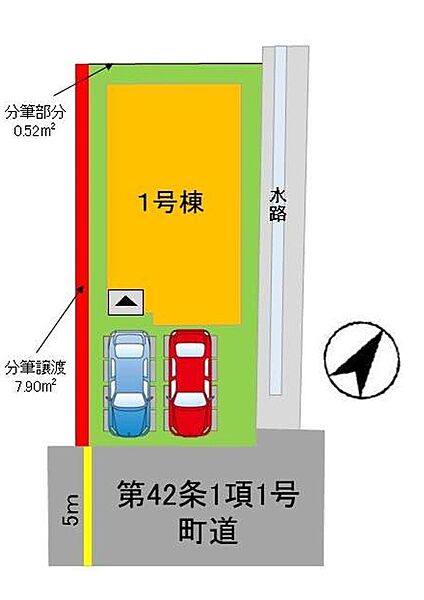 | 駐車場 | 2台 | 道路の幅員 | 1号棟:南東5m |