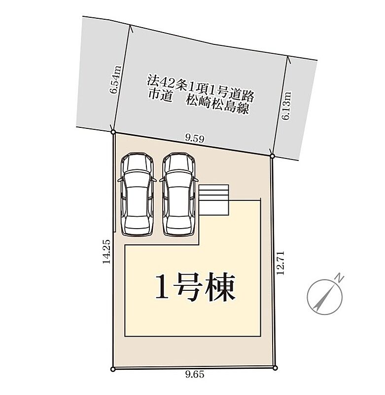 | 駐車場 | 2台 | 道路の幅員 | 1号棟:北西6.1m |