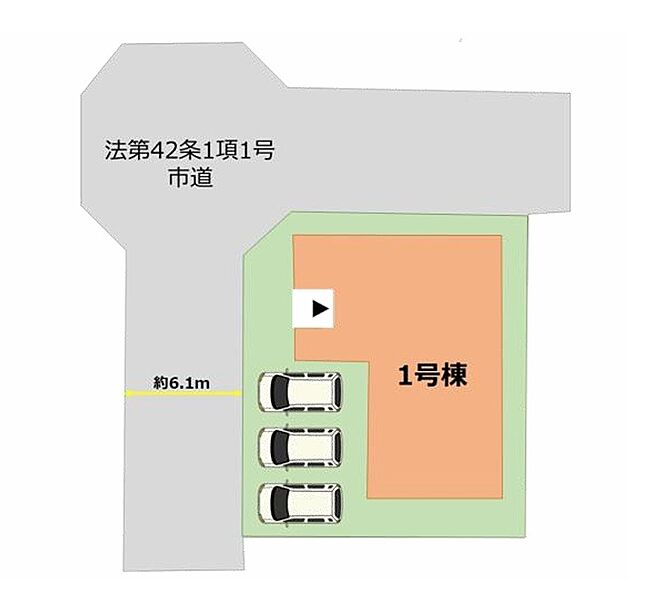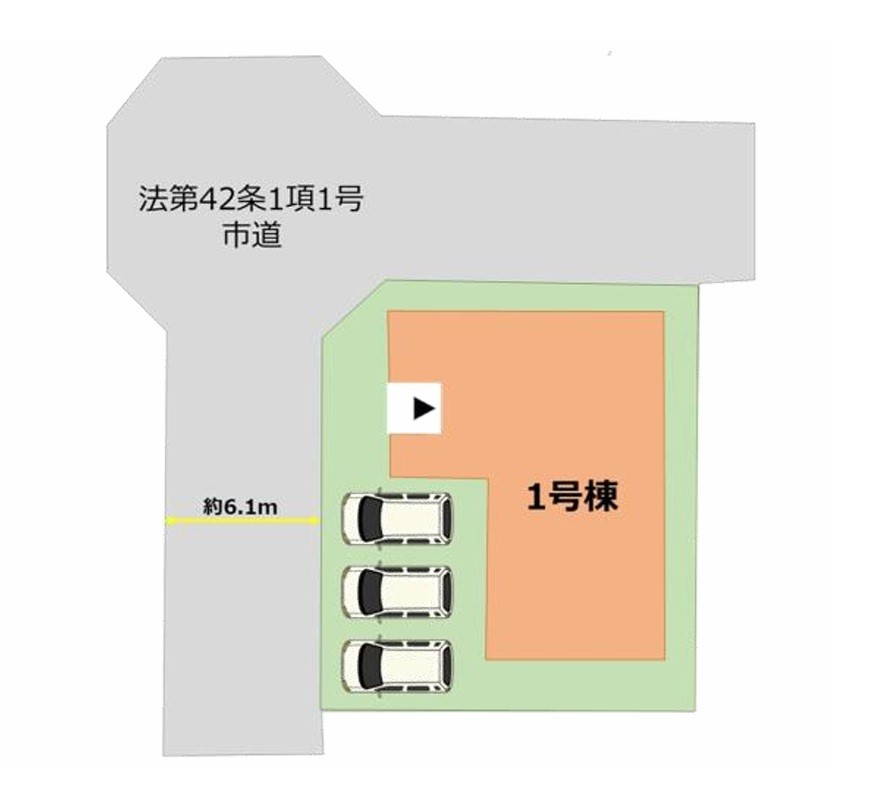 | 駐車場 | 3台 | 道路の幅員 | 1号棟:西6.1m 北6m |
