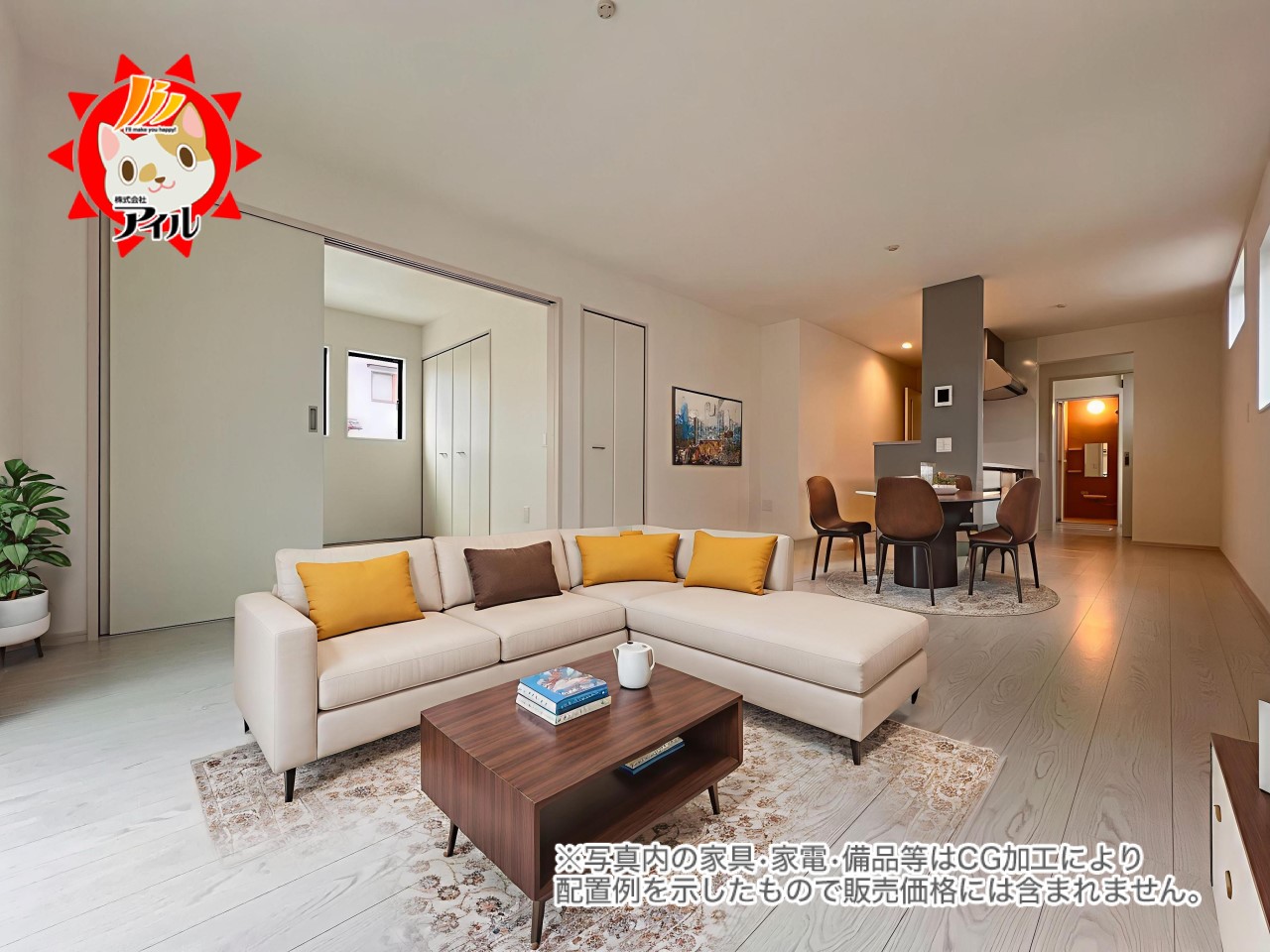 - ※完成予想図やCG合成画像は、門塀・植栽・庭・外観等、実際とは多少異なる場合があります。