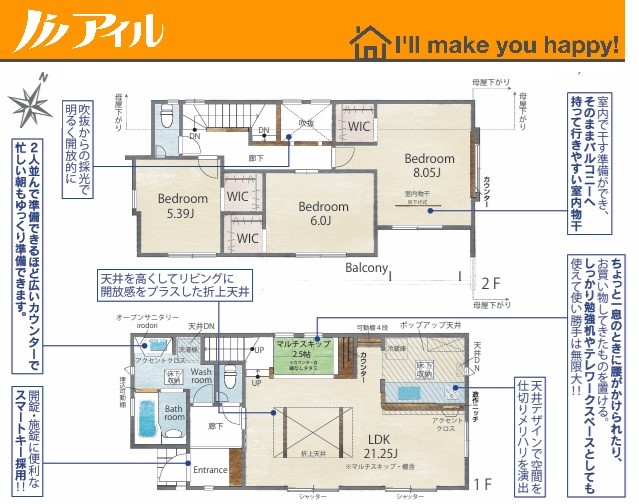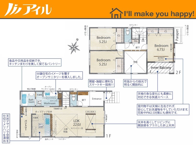 ■アイルは安心の創業39年! 定休日なし 毎日現地見学可能 店舗はリクルート天神ビル4Fです ■現地案内随時受付中 当日のご内覧も可能です!お仕事帰りのお時間でも事前にご相談頂ければ調整いたします。 ・さくっとコース・・・忙しいお客さまでもさくっとご見学可能です。 ・ゆっくりコース・・・細かい設備等もゆっくりとご説明させていただきます。 ・じっくりコース・・・分譲地+周辺環境なども一緒にご紹介可能です。 その他お客さまのご予定に合わせてご内覧いただけます。 ■お子様連れでのご内覧・ご来店も大歓迎! お子様向けのお菓子等ご用意しております。お気軽にお申し付けくださいませ。 ■ご案内方法 ◎お客さまのご指定時間帯に、現地物件でのお待ち合わせ ◎担当スタッフによる送迎 ・ご自宅 ・最寄駅 ・物件近くの目印施設 etc… その他ご希望のお迎え場所等ございましたらお気軽にご相談下さい。 ◎弊社にご来店される場合 福岡市中央区舞鶴1-1-3 リクルート天神ビル4F ※お車でお越しの場合、駐車場料金は弊社が負担いたしますのでご安心ください 『接道』二方 北東9.6m公道 南西4m私道 『法令上の制限』宅地造成工事規制区域:有その他制限事項:地区計画(横浜一丁目) 設備:公営水道 下水 集中LPG 防犯シャッター 設計住宅性能評価付 長期優良住宅 建設住宅性能評価書(新築時) BELS/省エネ基準適合認定書あり 駐車場2台以上 閑静な住宅地 平坦地 地盤調査済 山が見える 周辺交通量少なめ スーパーが近い(10分以内) 小学校徒歩10分以内 中学校徒歩10分以内 公園5分以内 システムキッチン ガス3口 カウンタキッチン 対面キッチン 食器洗い機付き 浄水器 ユニットバス 追い焚き 浴室乾燥機 ウォシュレット オートバス付き トイレ2ヶ所 浴室1坪以上 浴室に窓 節水型トイレ 浴室暖房 バルコニー 2階建 LDK20畳以上 採光2面 南西向き フローリング リビング階段 スマートキー クローゼット ウォークインクローゼット 床下収納 下駄箱 シャンプドレッサー付き フラット35Sに対応 年度内入居可 モニタ付きインターフォン 複層ガラス 火災警報器(報知機) 24時間換気システム |