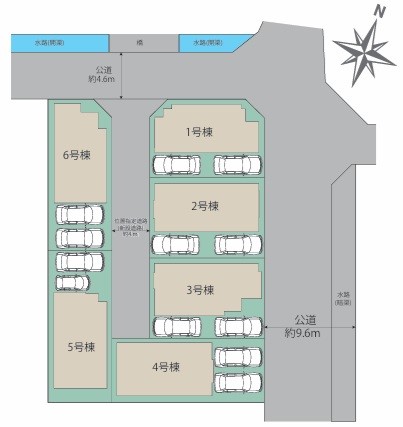 | 駐車場 | 2台 | 道路の幅員 | 2号棟:北東9.6m 南西4m /4号棟:北東9.6m /6号棟:南西4m 北西4.6m /1号棟:北東9.6m 北西4.6m 南西4m /5号棟:南西4m /3号棟:北東9.6m 南西4m …他 |