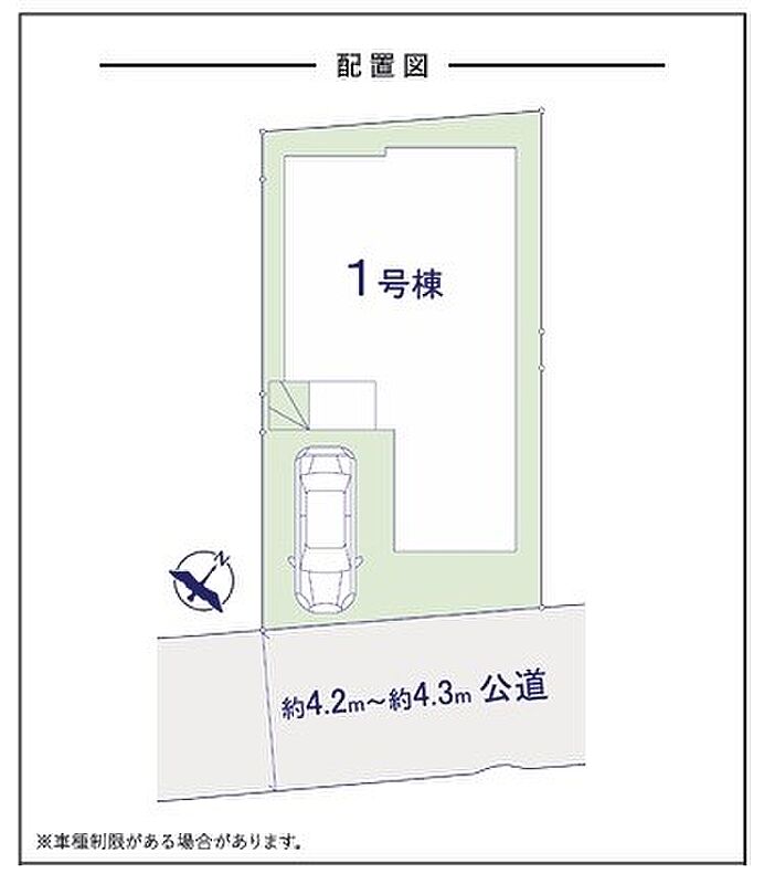 | 駐車場 | 1台 | 道路の幅員 | 1号棟:南東4.2m |