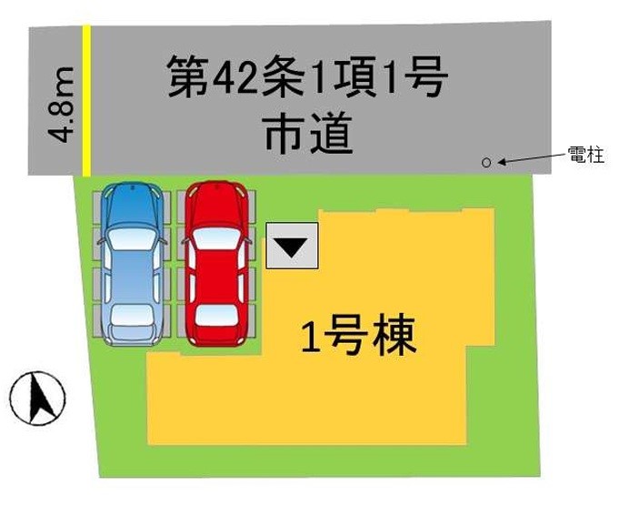 | 駐車場 | 2台 | 道路の幅員 | 1号棟:北4.8m |