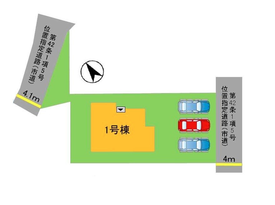 | 駐車場 | 3台 | 道路の幅員 | 1号棟:南東4m 北4.1m |
