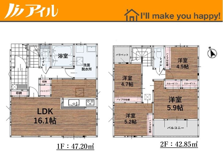 | 建物面積 | 90.05m2~103.30m2 | 土地面積 | 151.48m2~168.12m2 |