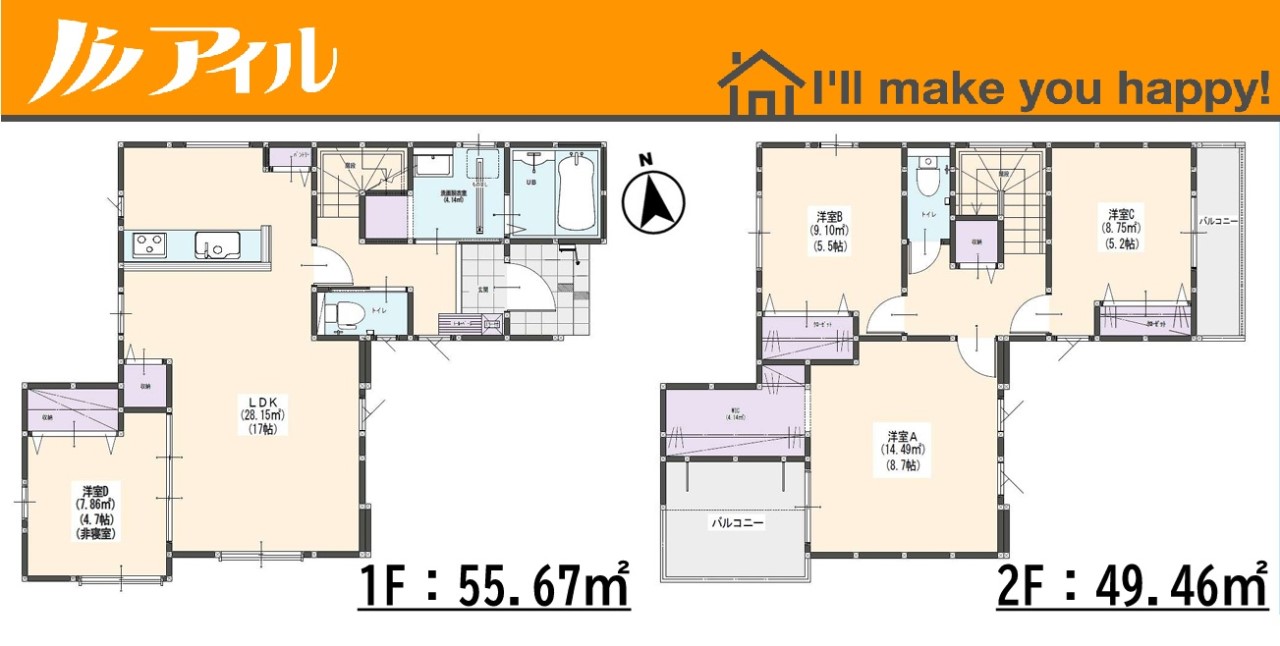 ■アイルは安心の創業39年! 定休日なし 毎日現地見学可能 店舗はリクルート天神ビル4Fです ■現地案内随時受付中 当日のご内覧も可能です!お仕事帰りのお時間でも事前にご相談頂ければ調整いたします。 ・さくっとコース・・・忙しいお客さまでもさくっとご見学可能です。 ・ゆっくりコース・・・細かい設備等もゆっくりとご説明させていただきます。 ・じっくりコース・・・分譲地+周辺環境なども一緒にご紹介可能です。 その他お客さまのご予定に合わせてご内覧いただけます。 ■お子様連れでのご内覧・ご来店も大歓迎! お子様向けのお菓子等ご用意しております。お気軽にお申し付けくださいませ。 ■ご案内方法 ◎お客さまのご指定時間帯に、現地物件でのお待ち合わせ ◎担当スタッフによる送迎 ・ご自宅 ・最寄駅 ・物件近くの目印施設 etc… その他ご希望のお迎え場所等ございましたらお気軽にご相談下さい。 ◎弊社にご来店される場合 福岡市中央区舞鶴1-1-3 リクルート天神ビル4F ※お車でお越しの場合、駐車場料金は弊社が負担いたしますのでご安心ください 『接道』一方 南東5.9m公道 『法令上の制限』壁面後退:有宅地造成工事規制区域:有高さ最高限度:有その他制限事項:法第22条区域 設備:都市ガス 公営水道 下水 防犯シャッター 駐車場2台以上 閑静な住宅地 平坦地 地盤調査済 周辺交通量少なめ スーパーが近い(10分以内) 中学校徒歩10分以内 保育施設・幼稚園5分以内 コンビニ5分以内 システムキッチン ガス3口 カウンタキッチン 対面キッチン 食器洗い機付き 浄水器 パントリー(食器・食品の収納庫) 追い焚き 浴室乾燥機 ウォシュレット オートバス付き トイレ2ヶ所 浴室1坪以上 高機能トイレ 浴室暖房 バルコニー バルコニー2面 2階建 LDK15畳以上 採光2面 採光3面 東南向き 全室フローリング スマートキー クローゼット ウォークインクローゼット 収納 床下収納 下駄箱 全居室収納 シャンプドレッサー付き フラット35Sに対応 モニタ付きインターフォン 複層ガラス 火災警報器(報知機) 陽当り良好 24時間換気システム |