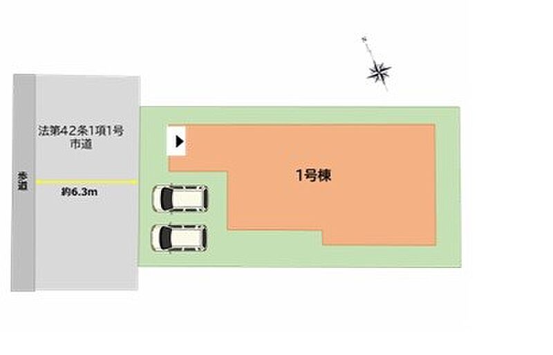 | 駐車場 | 2台 | 道路の幅員 | 1号棟:北西6.3m |