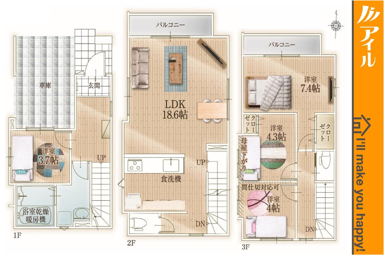 | 間取り | 3LDK~4LDK | 建物構造 | 木造 3階建 |