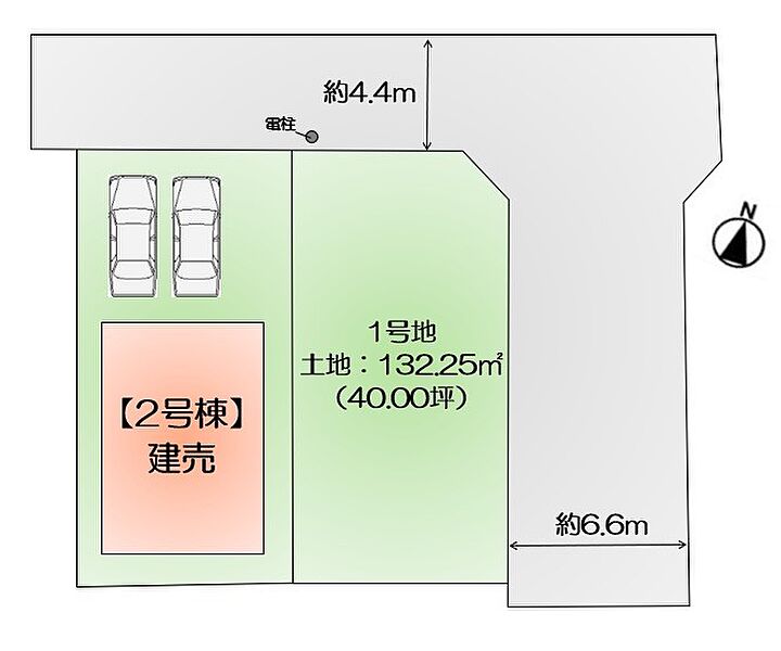 | 駐車場 | 2台 | 道路の幅員 | 2号地:北4.4m |