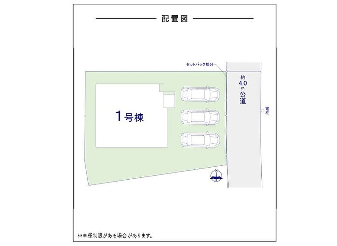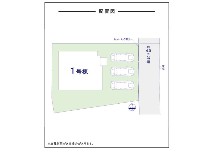 | 駐車場 | 3台 | 道路の幅員 | 1号棟:東4m |