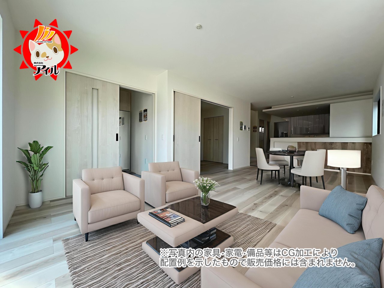 - ※完成予想図やCG合成画像は、門塀・植栽・庭・外観等、実際とは多少異なる場合があります。