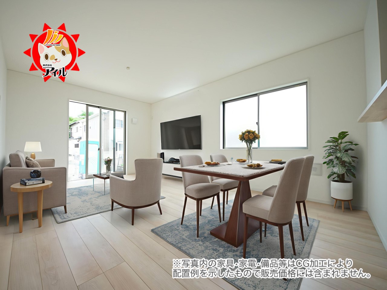 - ※完成予想図やCG合成画像は、門塀・植栽・庭・外観等、実際とは多少異なる場合があります。