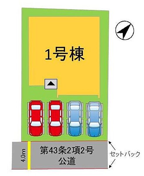 | 駐車場 | 4台 | 道路の幅員 | 1号棟:南東4m |