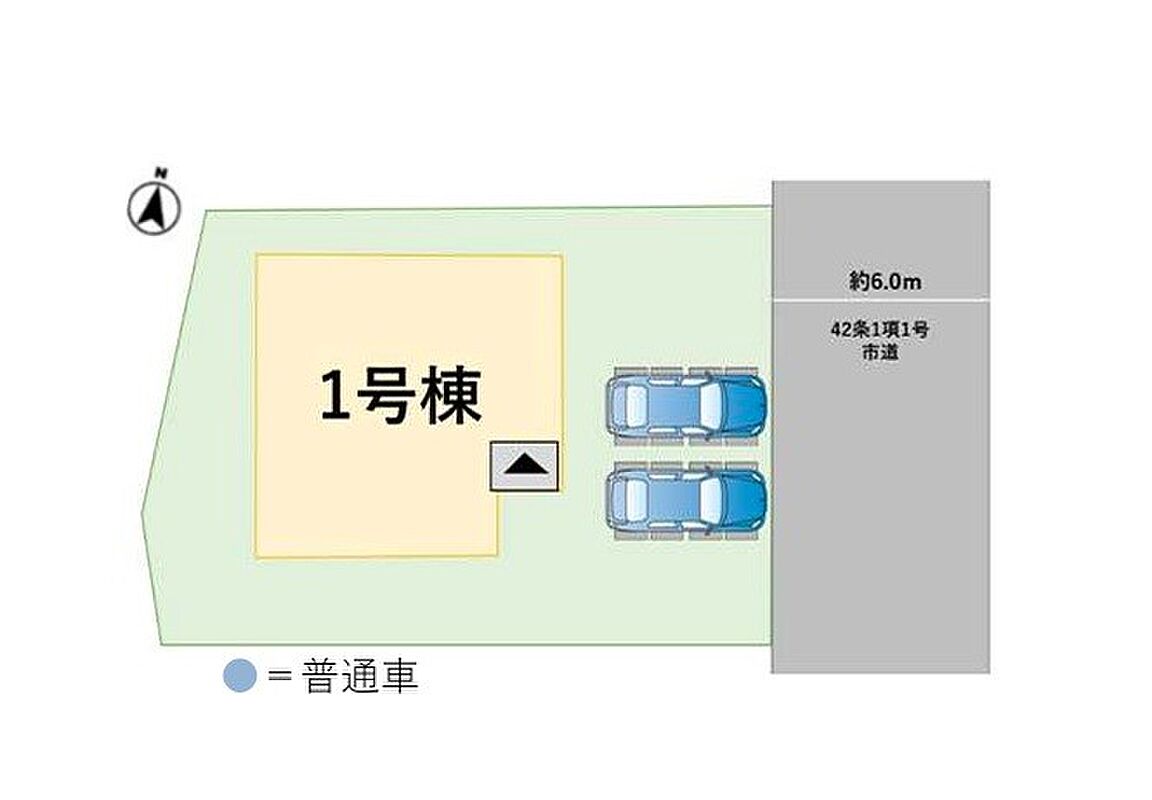 | 駐車場 | 2台 | 道路の幅員 | 1号棟:東6m |