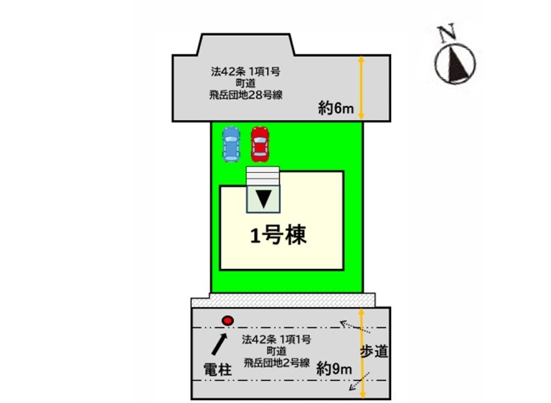 | 駐車場 | 2台 | 道路の幅員 | 1号棟:北6m 南9m |