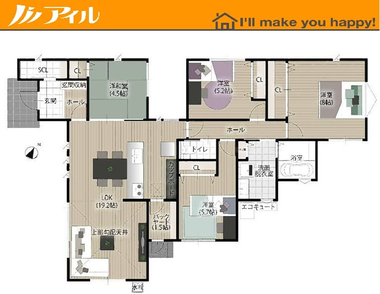 4号地 間取り 4LDK 価格 4280万円 建物面積 115.1m2 土地面積 207.36m2 -