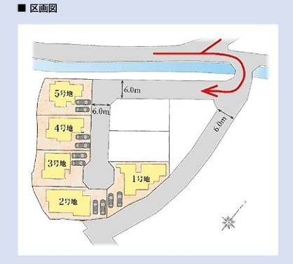 | 駐車場 | 2台 | 道路の幅員 | 5号地:北東6m /4号地:北東6m /1号地:東6m /3号地:北東6m /2号地:東6m |