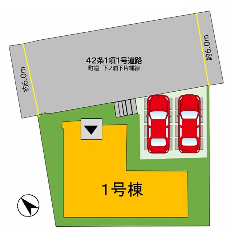 | 駐車場 | 2台 | 道路の幅員 | 1号棟:北東6m |