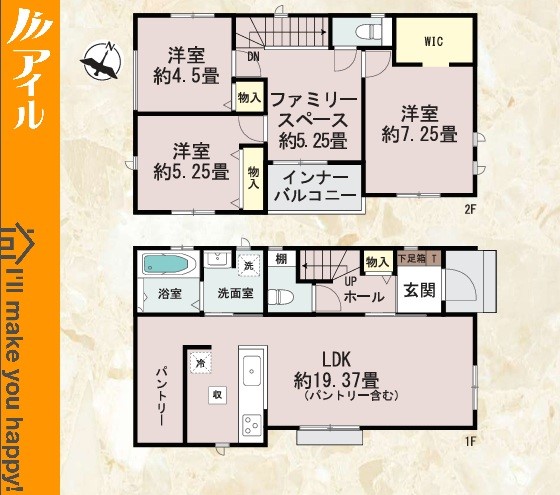 ◆マックスバリュ(徒歩7分)、ミニストップ(徒歩3分) ◆収納充実!WICやパントリー、ホール収納を完備 ◆広々LDK♪19.37帖のゆとりあるリビング ◆カースペース並列2台駐車可能