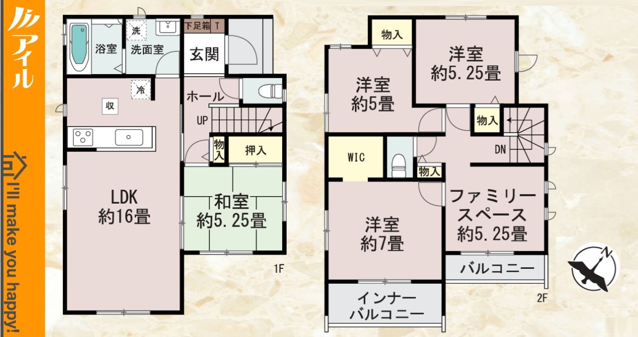 ■アイルは安心の創業39年! 定休日なし 毎日現地見学可能 店舗はリクルート天神ビル4Fです ■現地案内随時受付中 当日のご内覧も可能です!お仕事帰りのお時間でも事前にご相談頂ければ調整いたします。 ・さくっとコース・・・忙しいお客さまでもさくっとご見学可能です。 ・ゆっくりコース・・・細かい設備等もゆっくりとご説明させていただきます。 ・じっくりコース・・・分譲地+周辺環境なども一緒にご紹介可能です。 その他お客さまのご予定に合わせてご内覧いただけます。 ■お子様連れでのご内覧・ご来店も大歓迎! お子様向けのお菓子等ご用意しております。お気軽にお申し付けくださいませ。 ■ご案内方法 ◎お客さまのご指定時間帯に、現地物件でのお待ち合わせ ◎担当スタッフによる送迎 ・ご自宅 ・最寄駅 ・物件近くの目印施設 etc… その他ご希望のお迎え場所等ございましたらお気軽にご相談下さい。 ◎弊社にご来店される場合 福岡市中央区舞鶴1-1-3 リクルート天神ビル4F ※お車でお越しの場合、駐車場料金は弊社が負担いたしますのでご安心ください 『接道』一方 南3.9m公道 『法令上の制限』その他制限事項:法第22条区域 設備:都市ガス 公営水道 下水 防犯シャッター 設計住宅性能評価付 長期優良住宅 建設住宅性能評価書(新築時) 閑静な住宅地 平坦地 地盤調査済 南側道路面す 周辺交通量少なめ スーパーが近い(10分以内) 総合病院徒歩10分以内 小学校徒歩10分以内 公園5分以内 駐車場1台 システムキッチン ガス3口 カウンタキッチン 対面キッチン 浄水器 追い焚き 浴室乾燥機 ウォシュレット 浴室1坪以上 浴室に窓 節水型トイレ バルコニー 南面バルコニー 2階建 LDK15畳以上 採光2面 全室南向き 南向き 全室2面採光 全室フローリング クローゼット 収納 床下収納 下駄箱 シャンプドレッサー付き フラット35Sに対応 年度内入居可 モニタ付きインターフォン 複層ガラス 火災警報器(報知機) 陽当り良好 24時間換気システム セットバック量:1.65m2 |