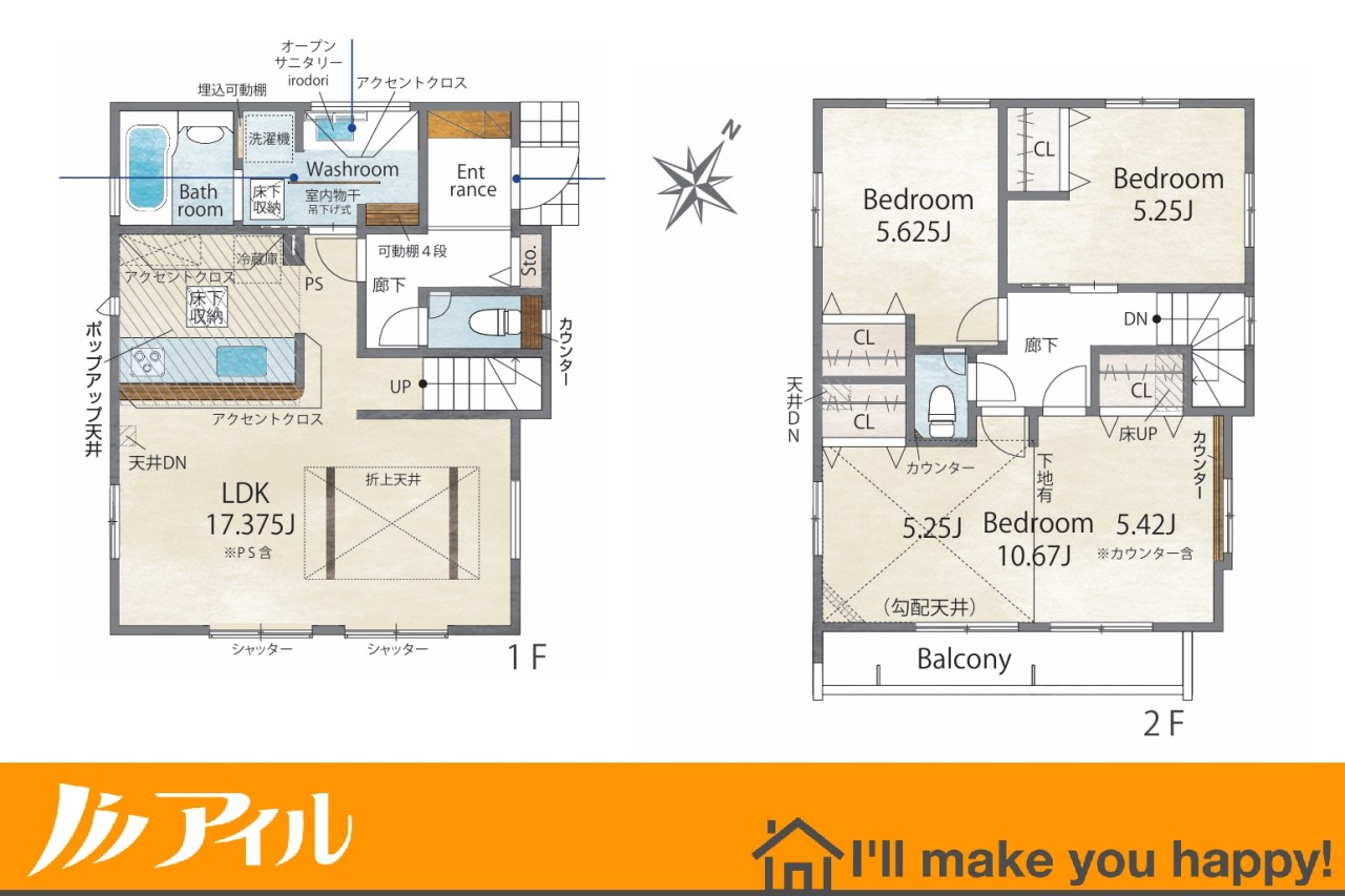 ■アイルは安心の創業39年! 定休日なし 毎日現地見学可能 店舗はリクルート天神ビル4Fです ■現地案内随時受付中 当日のご内覧も可能です!お仕事帰りのお時間でも事前にご相談頂ければ調整いたします。 ・さくっとコース・・・忙しいお客さまでもさくっとご見学可能です。 ・ゆっくりコース・・・細かい設備等もゆっくりとご説明させていただきます。 ・じっくりコース・・・分譲地+周辺環境なども一緒にご紹介可能です。 その他お客さまのご予定に合わせてご内覧いただけます。 ■お子様連れでのご内覧・ご来店も大歓迎! お子様向けのお菓子等ご用意しております。お気軽にお申し付けくださいませ。 ■ご案内方法 ◎お客さまのご指定時間帯に、現地物件でのお待ち合わせ ◎担当スタッフによる送迎 ・ご自宅 ・最寄駅 ・物件近くの目印施設 etc… その他ご希望のお迎え場所等ございましたらお気軽にご相談下さい。 ◎弊社にご来店される場合 福岡市中央区舞鶴1-1-3 リクルート天神ビル4F ※お車でお越しの場合、駐車場料金は弊社が負担いたしますのでご安心ください 『接道』角地 南西11.6m公道 南東4.6m公道 『法令上の制限』宅地造成工事規制区域:有 設備:個別LPG 公営水道 下水 防犯シャッター 設計住宅性能評価付 建設住宅性能評価付 長期優良住宅 建設住宅性能評価書(新築時) BELS/省エネ基準適合認定書あり 駐車場2台以上 平坦地 角地 地盤調査済 南側道路面す 前道6m以上 スーパーが近い(10分以内) 総合病院徒歩10分以内 小学校徒歩10分以内 公園5分以内 コンビニ5分以内 システムキッチン ガス3口 カウンタキッチン 対面キッチン 食器洗い機付き 浄水器 勝手口 追い焚き 浴室乾燥機 ウォシュレット オートバス付き 脱衣所 トイレ2ヶ所 浴室1坪以上 浴室に窓 節水型トイレ 浴室暖房 バルコニー 2階建 ロフト LDK15畳以上 採光2面 採光3面 東南向き 全室フローリング スマートキー クローゼット ウォークインクローゼット 収納 床下収納 下駄箱 シャンプドレッサー付き フラット35Sに対応 年内入居可 モニタ付きインターフォン 複層ガラス 火災警報器(報知機) 陽当り良好 24時間換気システム |