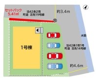 | 駐車場 | 4台 | 道路の幅員 | 1号棟:北3.4m 東4.6m |