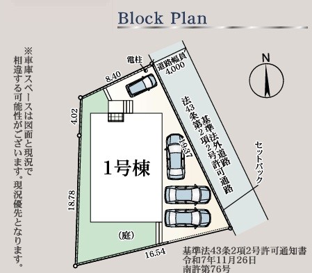 | 駐車場 | 4台 | 道路の幅員 | 1号棟:北東3.8m |