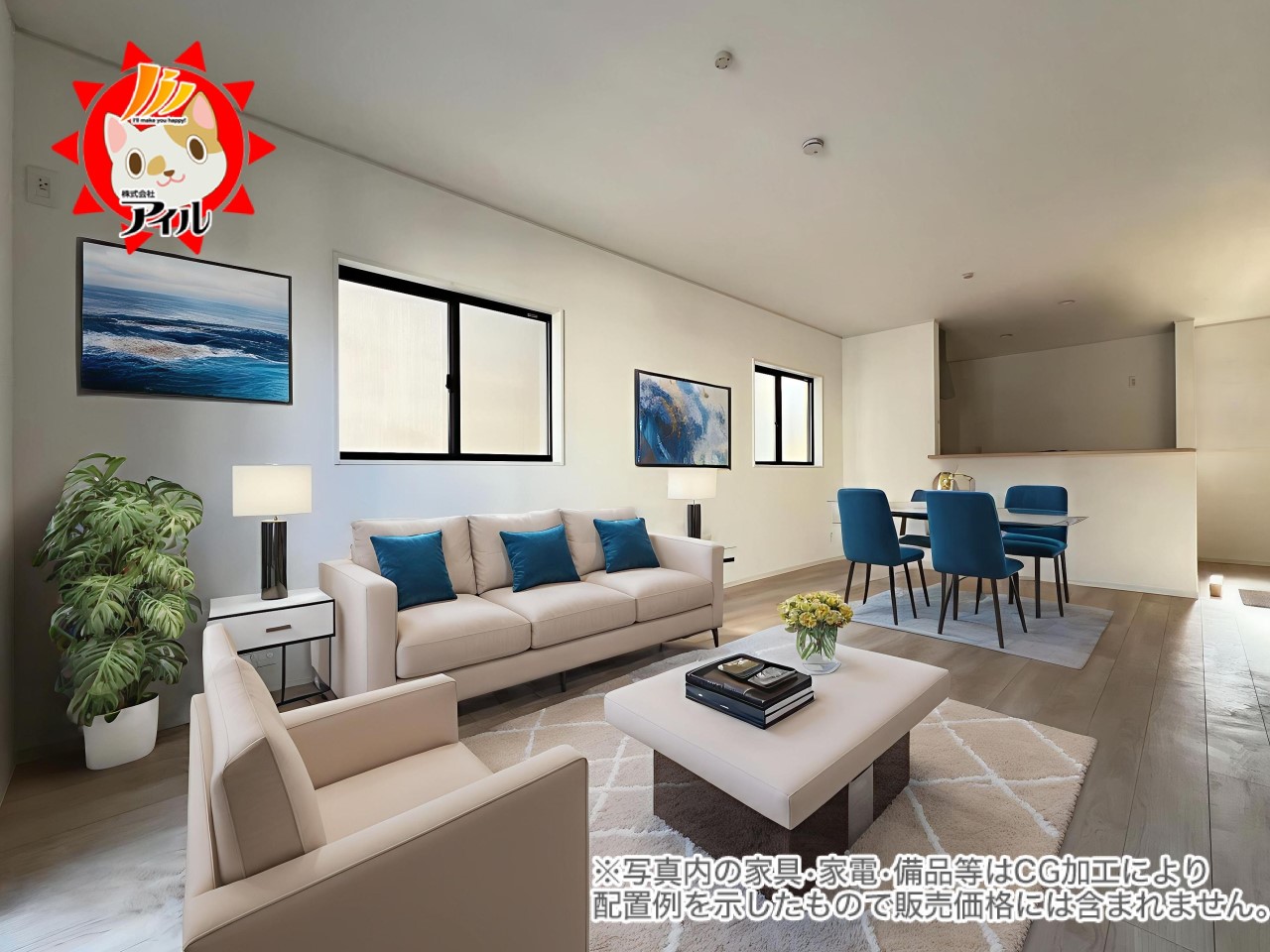 - ※完成予想図やCG合成画像は、門塀・植栽・庭・外観等、実際とは多少異なる場合があります。