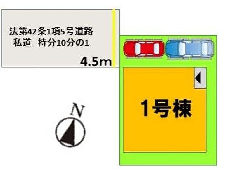 | 駐車場 | 2台 | 道路の幅員 | 1号棟:西4.5m |