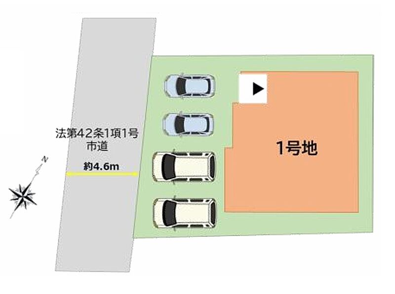 | 駐車場 | 4台 | 道路の幅員 | 1号棟:南西4.6m |
