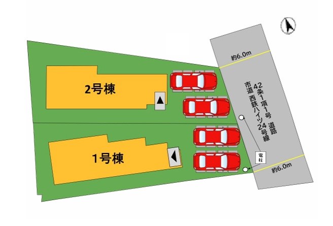 | 駐車場 | 2台 | 道路の幅員 | 1号棟:東6m /2号棟:東6m |