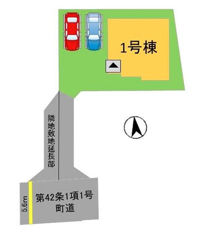 | 駐車場 | 2台 | 道路の幅員 | 1号棟:南5.6m |