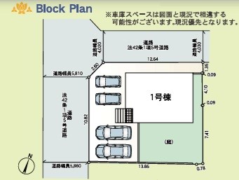 | 駐車場 | 4台 | 道路の幅員 | 1号棟:北西4m 南西5.8m |