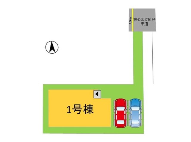 | 駐車場 | 2台 | 道路の幅員 | 1号棟:北4.9m |